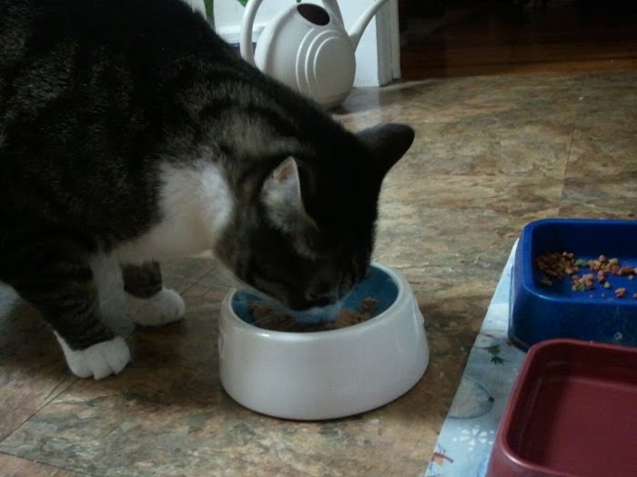 Here she is gobbling up the Fish and Sweet potato flavor.
