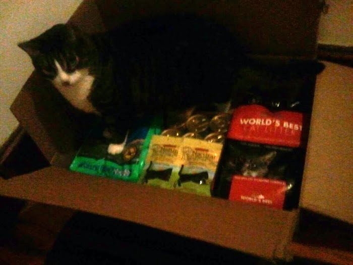 When the box arrived, Sebastian jumped right into the box. Hahaha He must have loved the smells of all the yummy food that was delivered. He didn't even wait until I took the cat food out of the box.